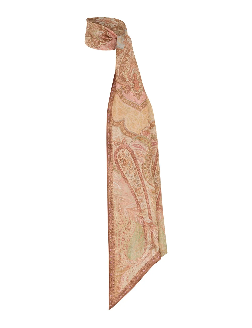 ITEM DETAILS The Printed Silk Neck Scarf in Tapestry Multi from our Resort Swim 2026 Collection. A silk neck scarf featuring a customised placement print and fine rolled hem. - 100% silk fabric - Placement printed neck scarf Style Code: 1055XC26A2 SIZE DETAILS 18cm x 180cm CARE INSTRUCTIONS 100% silk Dry clean only code f (hydrocarbon only); Remove any detachable trims prior to dry cleaning; Cover to protect trim; Do not steam; Iron in low temperature with protective cloth; Do not spot clean Always check the label or care card for specific care instructions.