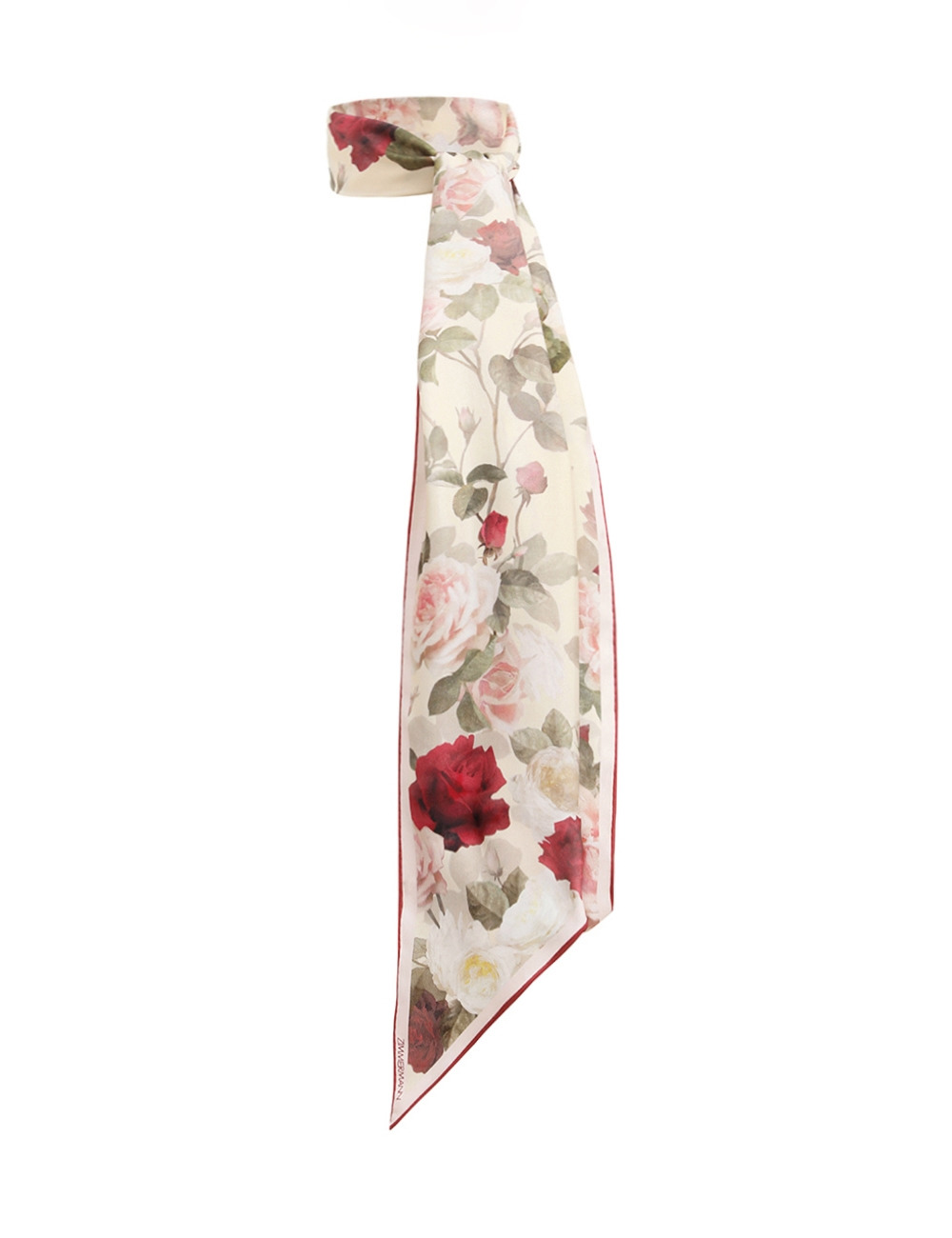 ITEM DETAILS The Printed Silk Neck Scarf in Cream Cascade from our Fall 2025 Collection, Hypnotic. A silk neck scarf featuring a customised placement print and fine rolled hem. - 100% silk fabric - Placement printed neck scarf Style Code: 1055XF25A1 SIZE DETAILS 7.5 x 72 18.5cm x 183cm Item measurements are in inches CARE INSTRUCTIONS 100% silk Dry clean only code f (hydrocarbon only); Remove any detachable trims prior to dry cleaning; Cover to protect trim; Do not steam; Cool iron with protective cloth; Do not spot clean Always check the label or care card for specific care instructions.