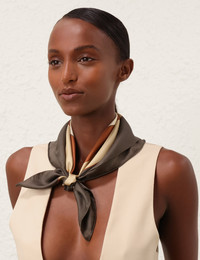 ITEM DETAILS The Printed Silk Square 55 in Olive Geo from our Fall 2025 Collection, Hypnotic. A silk square scarf featuring a customised placement print and fine rolled hem. - 100% silk fabric - Placement printed neck scarf Style Code: 2709XF25A1 SIZE DETAILS 21.5 x 21.5 Item measurements are in inches CARE INSTRUCTIONS 100% silk Dry clean only code f (hydrocarbon only); Remove any detachable trims prior to dry cleaning; Cover to protect trim; Do not steam; Cool iron with protective cloth; Do not spot clean Always check the label or care card for specific care instructions.