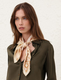 ITEM DETAILS The Printed Silk Square 70 in Map Print from our Fall 2025 Collection, Hypnotic. A silk square scarf featuring a customised placement print and fine rolled hem. - 100% silk fabric - Placement printed neck scarf Style Code: 1051XF25A1 SIZE DETAILS 70cm x 70cm CARE INSTRUCTIONS 100% silk Dry clean only code f (hydrocarbon only); Remove any detachable trims prior to dry cleaning; Cover to protect trim; Do not steam; Cool iron with protective cloth; Do not spot clean Always check the label or care card for specific care instructions.