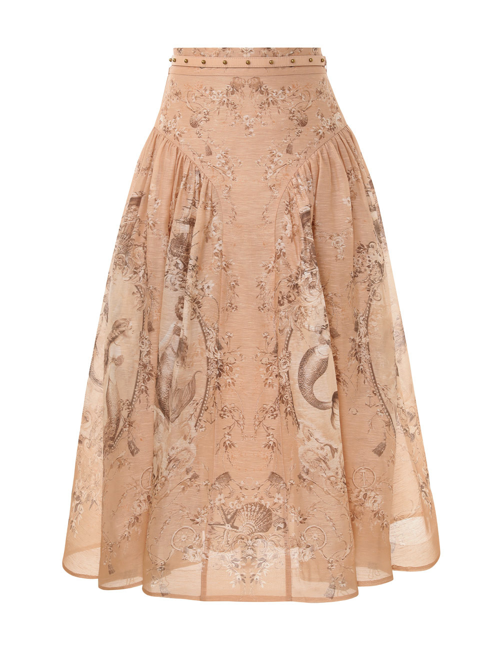 ITEM DETAILS The Rebellion Beaded Midi Skirt in Blush Mermaid from our Cruise 2026 Collection, Twisted Romance. A silk-linen organza skirt featuring a fixed waistband, removable waist belt, finished with a fully flared hem. - Silk-linen blend fabric - Fully flare skirt with tulle underlayer - Removable belt with stud detailing - Gathered at hip panels - Invisible zip closure at centre back - Lined Style Code: 6915SC261 SIZE DETAILS 0P 0 1 2 3 4 Length 31.5 34.5 34.5 34.5 34.5 34.5 Waist 26 27 29 30.5 33 34.5 Hip 31.5 33 34.5 37 38.5 41 Designed to be fitted at the waist and hips Mid-weight, non-stretchy fabric This garment fits true to size Available in size 0P, suited to clients who are under 5'3"/ 160cm Model is 5'9.5"/178 cm, bust size 32C/10C and wears a size 0 Item measurements are in inches CARE INSTRUCTIONS Main: 55% linen, 45% silk; contrast: 100% polyester; lining: 100% cotton; crinoline: 100% polyester Dry clean only code f (hydrocarbon only); Remove any detachable trims prior to dry cleaning; Cover to protect trim; Iron in low temperature with protective cloth; Light steam only; Do not spot clean Always check the label or care card for specific care instructions.
