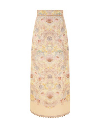 ITEM DETAILS The Rebellion Pencil Skirt in Lemon Floral from our Cruise 2026 Collection, Twisted Romance. A linen mid-rise pencil skirt featuring a fixed waistband and centre back zip closure. - Linen fabric - Midi-length skirt - Fitted mid-rise waistband - Invisible zip closure at centre back - Placement print - Centre back vent - Beaded trim at hem Style Code: 6932SC261 SIZE DETAILS 0P 0 1 2 3 4 Length 35.5 36 36 36 36 36 Waist 25 27 28.5 30.5 32.5 34.5 Hip 35.5 37 39.5 41 43.5 45 Designed to be fitted at the waist and hips Mid-weight, non-stretchy fabric This garment fits true to size Available in size 0P, suited to clients who are under 5'3"/ 160cm Model is 5'9.5"/178 cm, bust size 32C/10C and wears a size 0 Item measurements are in inches CARE INSTRUCTIONS Main: 100% linen; fusing: 100% polyester; lining: 100% cotton Dry clean only code f (hydrocarbon only); Remove any detachable trims prior to dry cleaning; Cover to protect trim; Iron in low temperature with protective cloth; Light steam only; Do not spot clean Always check the label or care card for specific care instructions.
