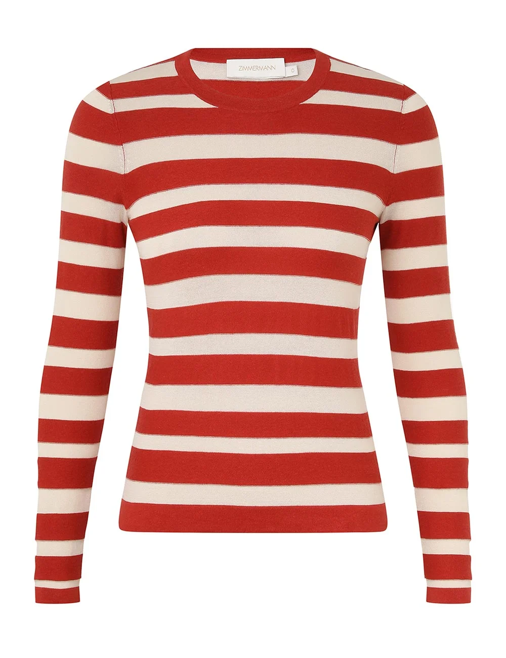 ITEM DETAILS The Rebellion Striped Top in Red/Cream Stripe from our Cruise 2026 Collection, Twisted Romance. A knit top featuring a crew neckline, long sleeves, and contrasting stripes throughout. - Long sleeve knit top - Crew neckline - Slim fit Style Code: 6615TC261 SIZE DETAILS 0P 0 1 2 3 4 Length 21 22.5 23 23 23 23 Bust 29 30.5 33 35.5 37 39.5 Waist 27 29 31.5 33 35.5 37 Sleeve 22.5 24 24.5 25 25 25 Designed for a close fit This garment fits true to size Available in size 0P, suited to clients who are under 5'3"/ 160cm Model is 5'9.5"/178 cm, bust size 32C/10C and wears a size 0 Item measurements are in inches CARE INSTRUCTIONS 58% cotton 22% linen 14% polyester 6% polyamide Dry clean only code f (hydrocarbon only) Remove any detachable trims prior to dry cleaning Cover to protect trim Iron in low temperature with protective cloth Do not spot clean Store garment flat do not hang Always check the label or care card for specific care instructions.