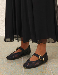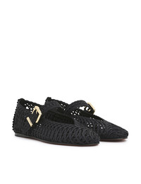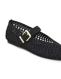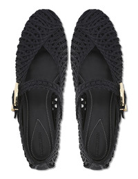 ITEM DETAILS The Reef Ballerina in Black from our Spring 2025 Collection, Illumination. A Mary Jane ballerina shoe featuring a branded ZIMMERMANN buckle and raffia cornely throughout. - Mary Jane ballerina design - Made in Italy - Round toe - Branded gold buckle Style Code: 3296FS25A1 SIZE DETAILS This shoe fits true to size. CARE INSTRUCTIONS Lining: 100% leather; sock-soletto: 100% leather; main: 60% viscose, 40% cotton; outsole-suola: 95% leather, 5% thermo-plastic-rubber Textile care To maintain optimal condition, apply a pfas-free waterproofing spray to the entire item and spot-clean stains with mild detergent; Rinse thoroughly to remove any soap residue, and air dry away from direct sunlight; If needed, gently brush with a soft brush Please note, the material may lose some stiffness over time For printed materials, pigments may transfer through fibers, so handle with care Avoid contact with pigmented materials to prevent staining. Store in a dry, moisture-free environment in its dust bag Always check the label or care card for specific care instructions.