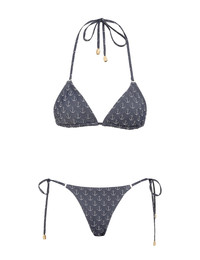 ITEM DETAILS The Scarborough Mini Tri Bikini in Navy from our Summer Swim 2025 Collection. A lycra bikini set featuring a triangle top and low cut pant with self tie straps. - Lycra bikini set - Triangle bra top with removable cups - Self tie straps with toggle ends - Medium coverage - Lined Summer Swim Exclusives: Only available at zimmermann.com and in select boutiques. Style Code: 3329WSS256 SIZE DETAILS This garment fits true to size Model is 5'10.5"/179 cm, bust size 34C/12C and wears a size 0 CARE INSTRUCTIONS Main: 86% polyamide, 14% elastane; lining: 92% recycled nylon, 8% spandex Do not roll up when wet; Rinse thoroughly after use; Remove any detachable trims prior to washing; Cold hand wash separately with mild detergent, avoid fabric softener; Dry in shade; Do not bleach or iron; Do not tumble dry; Do not dry clean; Light colours may be transparent when wet; Avoid contact with sunscreens, oils and rough surfaces; Avoid high temperature pools and spas treated with harsh chemicals Always check the label or care card for specific care instructions.