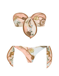 ITEM DETAILS The Scarborough Scarf Tie Bikini in Peach Nautical Map from our Summer Swim 2025 Collection. A lycra bandeau style bikini top featuring removable cups, adjustable straps and boning, paired with a low rise pant featuring side ties. - Lycra bikini set with shiny finish - Gathering across bust - Centre front bow tie - Ties at centre bust and side pant - Removable and adjustable straps for versatile fit - ZIMMERMANN clip fastening at bra centre back - Lined Summer Swim Exclusives: Only available at zimmermann.com and in select boutiques. Style Code: 3064WSS256 SIZE DETAILS This garment fits true to size Model is 5'10.5"/179 cm, bust size 34C/12C and wears a size 0 CARE INSTRUCTIONS Main: 80% polyamide, 20% elastane; lining: 92% polyamide, 8% elastane Do not roll up when wet; Rinse thoroughly after use; Remove any detachable trims prior to washing; Cold hand wash separately with mild detergent, avoid fabric softener; Dry in shade; Do not bleach or iron; Do not tumble dry; Do not dry clean; Light colours may be transparent when wet; Avoid contact with sunscreens, oils and rough surfaces; Avoid high temperature pools and spas treated with harsh chemicals Always check the label or care card for specific care instructions.