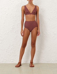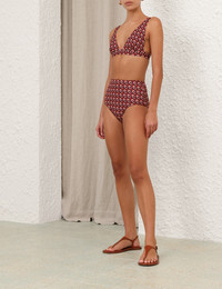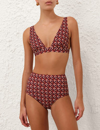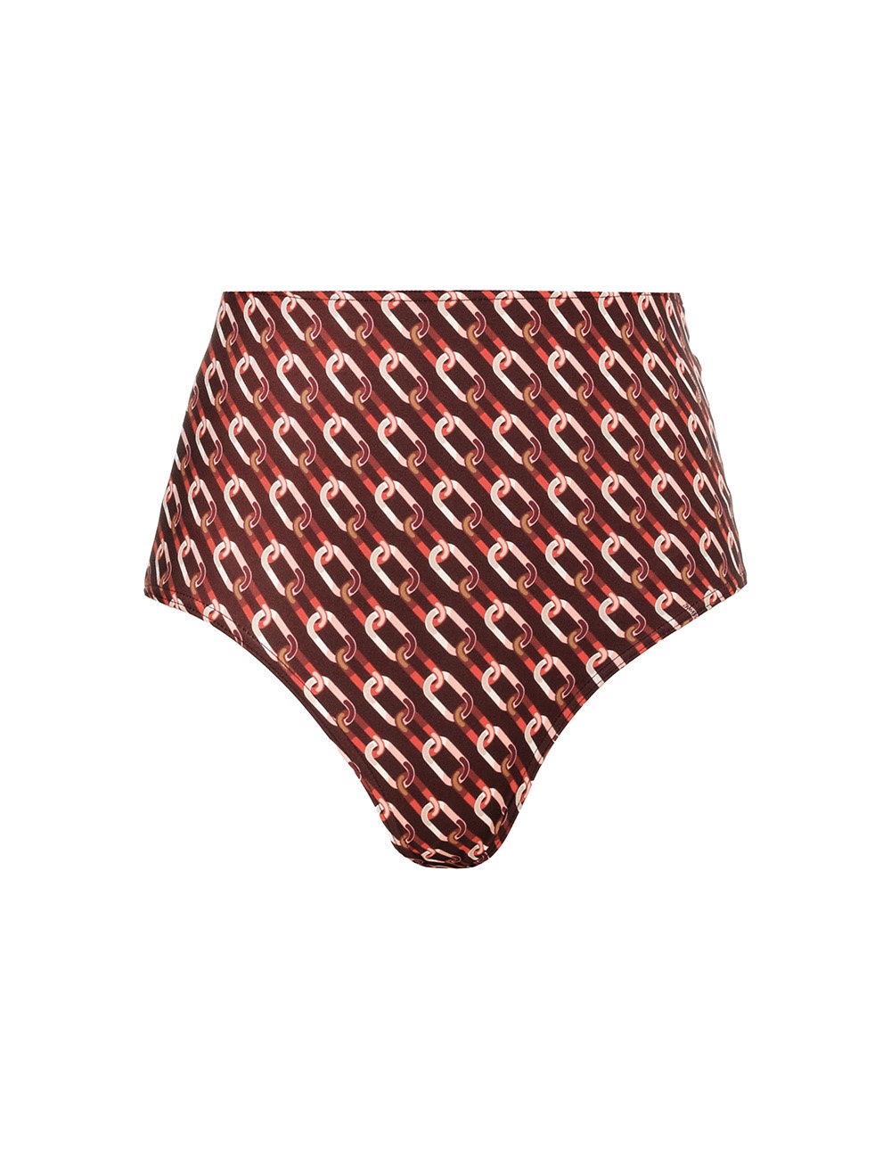 ITEM DETAILS The Separates High Pant in Burgundy Multi from our Summer Swim 2025 Collection. A high waisted bikini pant constructed from form-fitting Italian lycra featuring a low legline and full bottom coverage. - Italian lycra - High waisted bikini pant - Full bottom coverage - Low cut legline - Pant only, bra sold separately Style Code: 1375WSS25 SIZE DETAILS This garment fits true to size Model is 5'10.5"/179 cm, bust size 34C/12C and wears a size 0 CARE INSTRUCTIONS Main: 62% polyamide, 38% elastane; lining: 92% recycled nylon, 8% spandex Do not roll up when wet; Rinse thoroughly after use; Remove any detachable trims prior to washing; Cold hand wash separately with mild detergent, avoid fabric softener; Dry in shade; Do not bleach or iron; Do not tumble dry; Do not dry clean; Light colours may be transparent when wet; Avoid contact with sunscreens, oils and rough surfaces; Avoid high temperature pools and spas treated with harsh chemicals Always check the label or care card for specific care instructions.