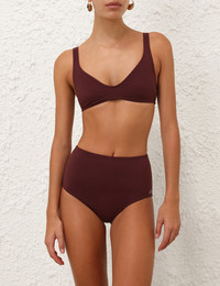 ITEM DETAILS The Separates High Pant in Chocolate from our Summer Swim 2025 Collection. A high waisted bikini pant constructed from form-fitting Italian lycra featuring a low legline and full bottom coverage. - Italian lycra - High waisted bikini pant - Full bottom coverage - Low cut legline - Pant only, bra sold separately Style Code: 1375WSS25 SIZE DETAILS This garment fits true to size Model is 5'10.5"/179 cm, bust size 34C/12C and wears a size 0 CARE INSTRUCTIONS Main: 62% polyamide, 38% elastane; lining: 92% recycled nylon, 8% spandex Do not roll up when wet; Rinse thoroughly after use; Remove any detachable trims prior to washing; Cold hand wash separately with mild detergent, avoid fabric softener; Dry in shade; Do not bleach or iron; Do not tumble dry; Do not dry clean; Light colours may be transparent when wet; Avoid contact with sunscreens, oils and rough surfaces; Avoid high temperature pools and spas treated with harsh chemicals Always check the label or care card for specific care instructions.