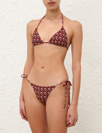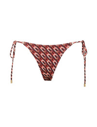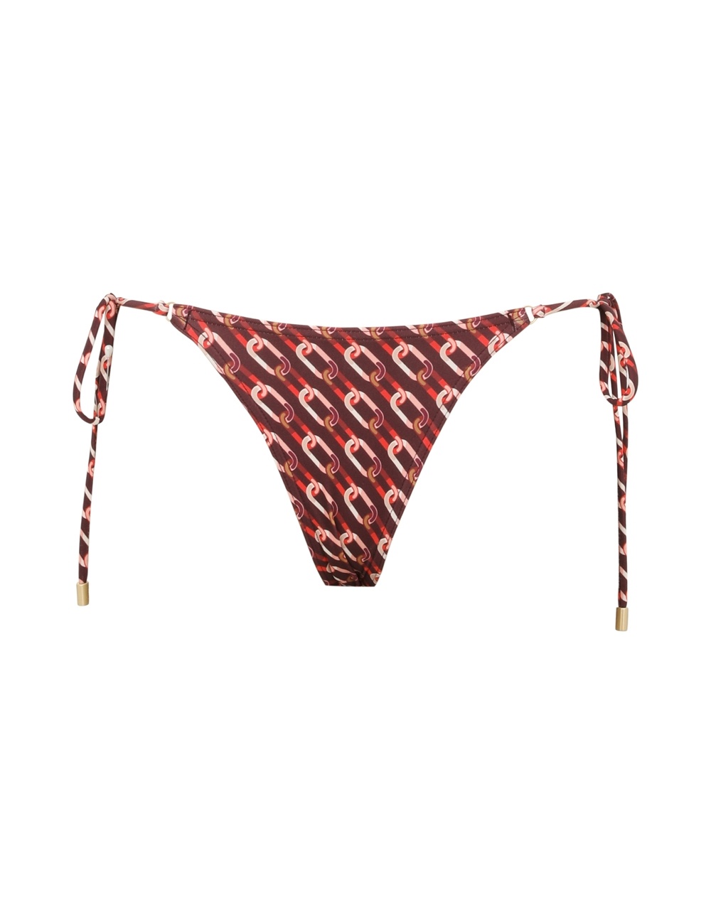 ITEM DETAILS The Separates Mini Tri Pant in Burgundy Multi from our Summer Swim 2025 Collection. A skinny low rise bikini pant constructed from Italian lycra featuring self tie side straps. - Italian lycra - Low rise, skinny bikini pant - Adjustable self tie straps at both sides - Matching toggle ends on straps - Brief bottom coverage - Pant only, bra sold separately Style Code: 1374WSS25 SIZE DETAILS This garment fits true to size Model is 5'10.5"/179 cm, bust size 34C/12C and wears a size 0 CARE INSTRUCTIONS Main: 62% polyamide, 38% elastane; lining: 92% recycled nylon, 8% spandex Do not roll up when wet; Rinse thoroughly after use; Remove any detachable trims prior to washing; Cold hand wash separately with mild detergent, avoid fabric softener; Dry in shade; Do not bleach or iron; Do not tumble dry; Do not dry clean; Light colours may be transparent when wet; Avoid contact with sunscreens, oils and rough surfaces; Avoid high temperature pools and spas treated with harsh chemicals Always check the label or care card for specific care instructions.