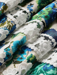 ITEM DETAILS The Stardust Mini Dress in Blue/Green Floral from our Resort Swim 2026 Collection. A cotton mini dress featuring a scoop neckline, adjustable straps with dot trim, finished with a full flare skirt and embroidered tassel hem. - Cotton fabric - Ruched bust - Fitted waistband panel - Shirred back bodice with invisible zip closure - Embroidered throughout - Spliced design - Side seam pockets Style Code: 6013DRS265 SIZE DETAILS 0P 0 1 2 3 4 Length 28.5 30 32.5 34.5 36 38.5 Waist 23.5 24.5 27 28.5 30.5 32.5 Fitted at the bust and waist, relaxed through the hips and legs This garment fits true to size Available in size 0P, suited to clients who are under 5'3"/ 160cm Model is 5'9.5"/178 cm, bust size 32C/10C and wears a size 0 Item measurements are in inches CARE INSTRUCTIONS Main: 100% cotton; lining: 100% cotton; trim: 100% polyester Dry clean only code f (hydrocarbon only); Remove any detachable trims prior to dry cleaning; Cover to protect trim; Iron in low temperature with protective cloth; Light steam only; Do not spot clean Always check the label or care card for specific care instructions.
