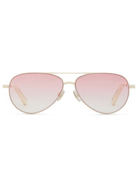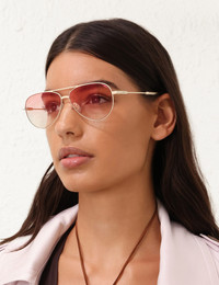 ITEM DETAILS The Sunbeam Aviator in Rose from our Spring 2025 Collection, Illumination. An aviator style frame featuring custom acetate temple tips with soft bevelled edges and gradient coloured lenses. - Acetate tip - Partially exposed metal core - Espresso lens are category 2 - Rose lens are category 1 - Comes with a ZIMMERMANN canvas case Style Code: 1030XS25A1 SIZE DETAILS LENS: Espresso: Category 2 Rose: Category 1 FRAME: Lens: 59mm Nose bridge: 12mm Temple length: 145mm CARE INSTRUCTIONS Frame: 100% metal, lens: 100% nylon Comes with a case and dust bag. Clean your sunglasses by gently rubbing them with a lens cleaning cloth and a liquid cleaner specifically designed for eyewear lenses. Whenever setting down your frames, place them lens side up to avoid scratching. When frames are not being worn, place them inside the protective case. Avoid leaving your sunglasses in the car, especially on hot days, to prevent warping. Wearing sunglasses on the top of your head can stretch the hinges over time - avoid if possible. Always check the label or care card for specific care instructions.