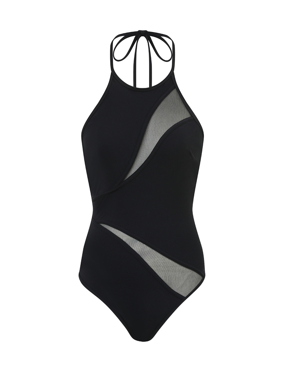 ITEM DETAILS The Wanderlust Spliced Mesh 1PC in Black from our Resort Swim 2026 Collection. A lycra one piece featuring a high halter neckline, medium bottom coverage and mesh panelling through the bodice. - Lycra one piece swimsuit - Halter neck tie with toggle ends - Side boning - Exposed back below shoulder blade - Sheer mesh panelling across bust and lower hip - Medium bottom coverage - Lined Style Code: 5379WRS262 SIZE DETAILS This garment fits true to size Model is 5'10.5"/179 cm, bust size 34C/12C and wears a size 0 CARE INSTRUCTIONS Main: 75% polyamide, 25% elastane; contrast: 81% polyester, 19% elastane; lining: 92% recycled nylon, 8% elastane Do not roll up when wet; Rinse immediately after use; Remove any detachable trims prior to washing; Cold hand wash separately with mild detergent, avoid fabric softener; Dry in shade; Do not bleach or iron; Do not tumble dry; Do not dry clean; Light colours may be transparent when wet; Avoid contact with sunscreens, oils, rough surfaces, and high temperature pools and spas; Always check the label or care card for specific care instructions.