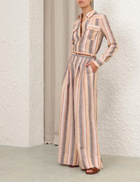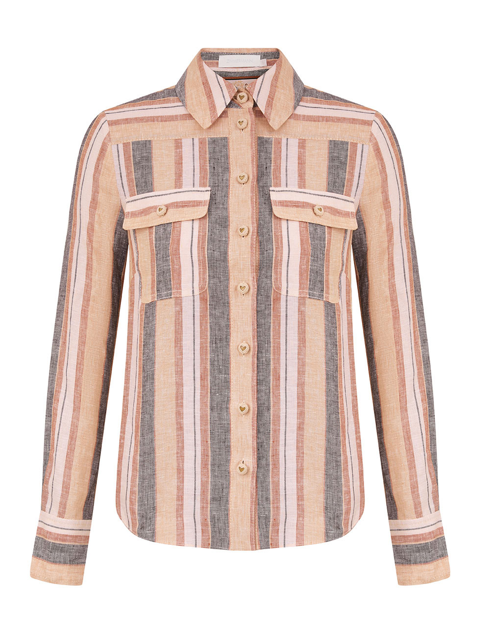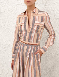 ITEM DETAILS The Wanderlust Stripe Shirt in Tan Multi Stripe from our Resort Swim 2026 Collection. A linen shirt featuring a classic collar, flap chest pockets and buttons down the centre front. - 100% linen fabric - Long sleeves with fitted, buttoned cuffs - Functional buttons down centre front opening - Chest pockets with flaps - Partial side splits Style Code: 5856TRS262 SIZE DETAILS 0P 0 1 2 3 4 Length 53 57 57 57 58 58 Bust 92 98 102 108 112 118 Sleeve 49 53 53 54 54 55 Slim fit Light-weight, non-stretchy fabric This garment fits true to size Available in size 0P, suited to clients who are under 5'3"/ 160cm Model is 5'9.5"/178 cm, bust size 32C/10C and wears a size 0 Item measurements have been rounded to the nearest cm CARE INSTRUCTIONS Main: 100% linen Dry clean only code f (hydrocarbon only); Remove any detachable trims prior to dry cleaning; Cover to protect trim; Iron in low temperature with protective cloth; Light steam only; Do not spot clean Always check the label or care card for specific care instructions.