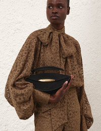 ITEM DETAILS The Wavelength Top Handle is the perfect effortless addition to a layered outfit, with the option to carry by hand or sling over your shoulder. The silhouette takes inspiration from the iconic Australian surfboard with a sculptural, pure silhouette enriched with fluid golden metallic details. - Suede - Suede lining - Shoulder and hand-carry - Golden hardware closure - Detachable chain shoulder strap - Internal and external flat pocket - Made in Romania Style Code: 5529XF25A1 SIZE DETAILS Length=11.5 Height 5.5 Depth 3 Handle Drop 1.5 Strap Drop 19.5 Length: 29cm Height: 13.5cm Depth: 7cm Handle Drop: 3.5cm Strap Drop: 50cm Item measurements are in inches CARE INSTRUCTIONS Main: 100% cow suede; trim: 100% calf leather; lining: 100% cow leather Suede care Handcrafted from genuine suede, this item may discolor or stain if exposed to humidity or atmospheric conditions Use a soft-bristled brush to remove soil and a stain repellent Avoid contact with light, heat, water, oils, perfume, and cosmetics Store in a dry environment in the original dust bag Always check the label or care card for specific care instructions.