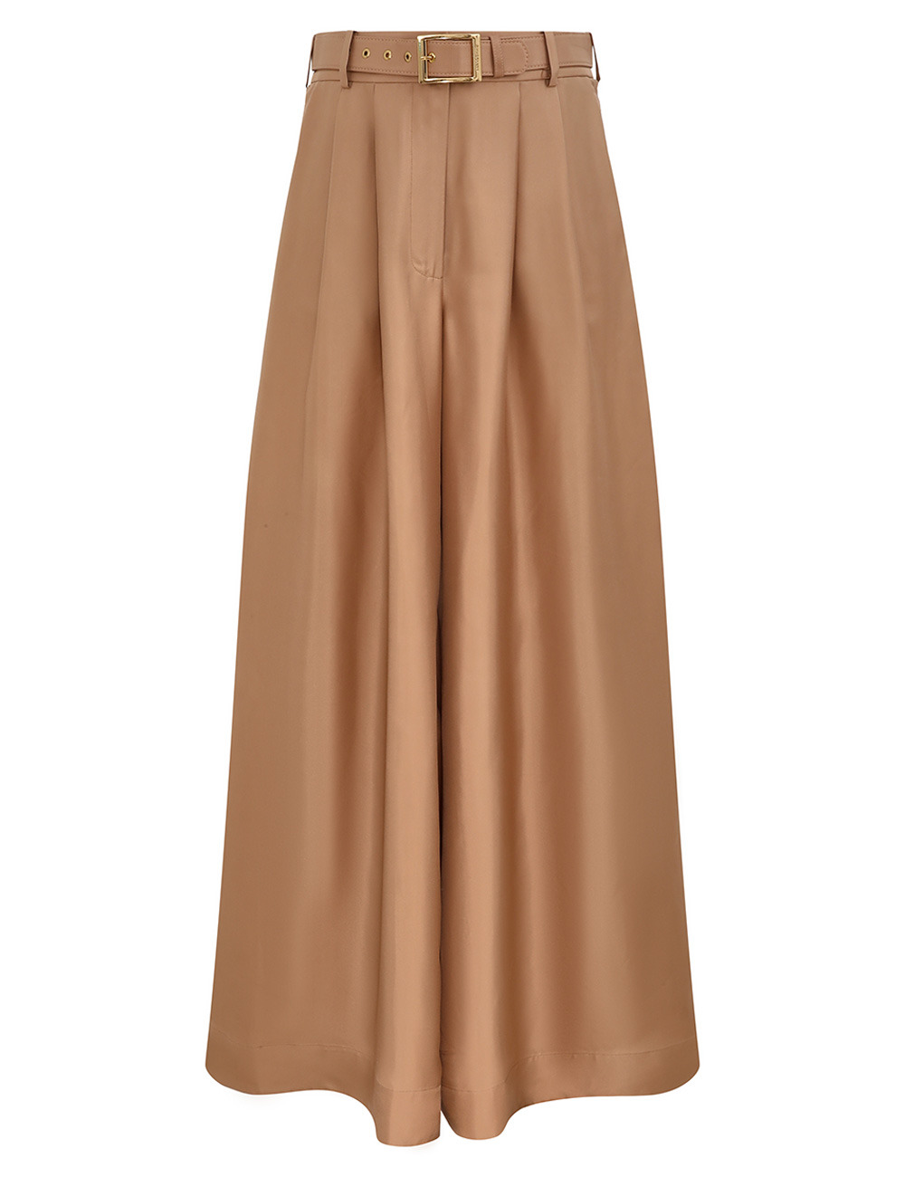 ITEM DETAILS The Wide Leg Pant in Biscuit from our Fall 2025 Collection, Hypnotic. A silk wide leg pant featuring a fixed waistband, removable belt and centre front pintucks. - 100% silk fabric - High waisted flare pant - Removable buckle belt with belt loops at the waist - Front fly closure with hook and eye - Jigger button on internal waistband - Front slant trouser pockets - Back welt pockets Style Code: 1069PF25R SIZE DETAILS 0P 0 1 2 3 4 Length 100 111 112 112 113 114 Waist 64 68 72 78 82 88 Hip 112 116 120 124 130 134 Inseam 76 85 85 85 85 85 Designed to be fitted at the waist, relaxed through the hips and legs This garment fits true to size Available in size 0P, suited to clients who are under 5'3"/ 160cm Model is 5'9.5"/178 cm, bust size 32C/10C and wears a size 0 Item measurements have been rounded to the nearest cm CARE INSTRUCTIONS Main: 100% silk; pocketing: 75% viscose, 25% silk Dry clean only code f (hydrocarbon only); Remove any detachable trims prior to dry cleaning; Cover to protect trim; Do not steam; Cool iron with protective cloth; Do not spot clean Always check the label or care card for specific care instructions.