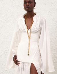 ITEM DETAILS The Wisp Necklace in Antique Gold from our Cruise 2026 Collection, Twisted Romance. A gold plated chain necklace featuring twisted brass detailing throughout. - 16KT gold plated brass - Quartz stone detailing - Custom seamless center back clasp Style Code: 6946XC26A1 SIZE DETAILS One size. CARE INSTRUCTIONS Stone: aventurine ; hardware:16 karat gold plated brass Our semi-precious stones are hand-cut to enhance their natural beauty, with unique variations in each piece Zimmermann jewellery is made from 16kt gold-plated brass Please remove during exercise, showering, or swimming Keep away from perfumes, acetones, creams, and water to prevent damage or discoloration Clean gently with a soft, lint-free clothavoid cleaning products Store in a cool, dry place, away from direct sunlight and heat Always check the label or care card for specific care instructions.