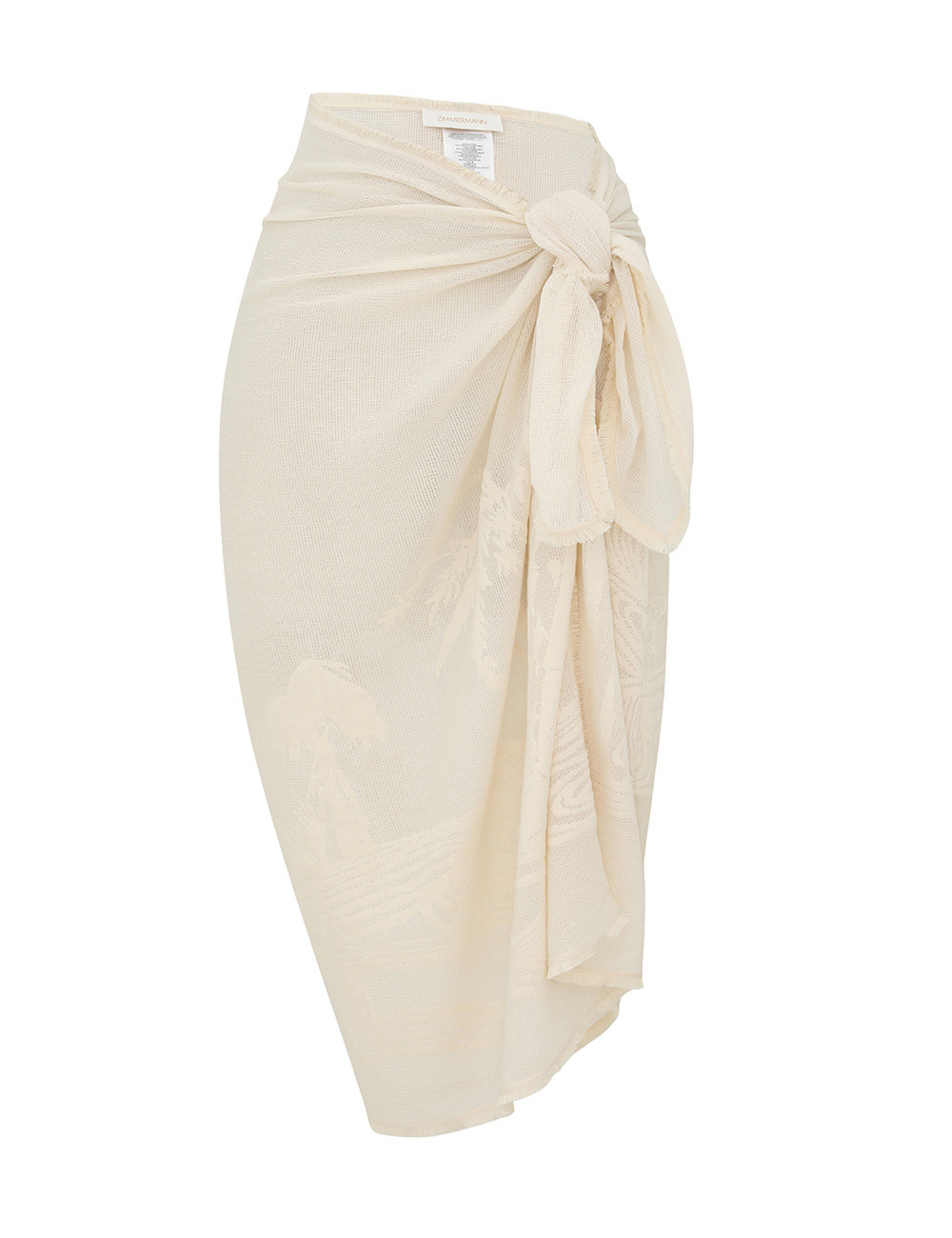 ITEM DETAILS The Woven Pareo in Ivory from our Summer Swim 2025 Collection. A large rectangle cotton pareo featuring frayed edges and a placement print throughout. - Cotton - Rectangle pareo - Customised placement print - Frayed edges Style Code: 3886XS25A2 SIZE DETAILS 95cm x 196cm CARE INSTRUCTIONS 100% cotton Gentle cold hand wash separately with mild detergent; Remove any detachable trims prior to cleaning; Cover to protect trim; Do not soak, rub or wring; Do not bleach; Dry in shade; Cool iron with protective cloth; Do not tumble dry; Do not spot clean; Dry cleanable code f (hydrocarbon only); Always check the label or care card for specific care instructions.