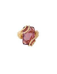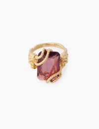 ITEM DETAILS The Zimmermann Bloom Ring in Gold/Burgundy from our Resort 2025 Collection, Crush. A gold plated ring featuring a statement stone with an intricate cast setting. - 12KT gold plated - Custom cut glass stone - Rope look detailing Style Code: 2381XR25A1 SIZE DETAILS Ring diameter: Size 13: 17mm Size 15: 18mm Size 18: 19mm CARE INSTRUCTIONS 80% brass 20% glass Zimmermann jewellery is produced in 12kt gold-plated brass. Please remove when exercising, showering or swimming. Avoid contact with perfumes, acetones, hand and body creams and water as they may cause damage or discolouring. We have taken great care in sourcing these freshwater pearls for their natural beauty. Any irregularity is inherent in its natural and should not be considered a flaw. There will be some variance from piece to piece. Clean your jewellery carefully with a soft, non-abrasive, lint-free cloth to remove dirt and dust. Do not use cleaning products. Store in a cool, dry place to prevent damage. Keep away from direct sunlight and heat. Always check the label or care card for specific care instructions.