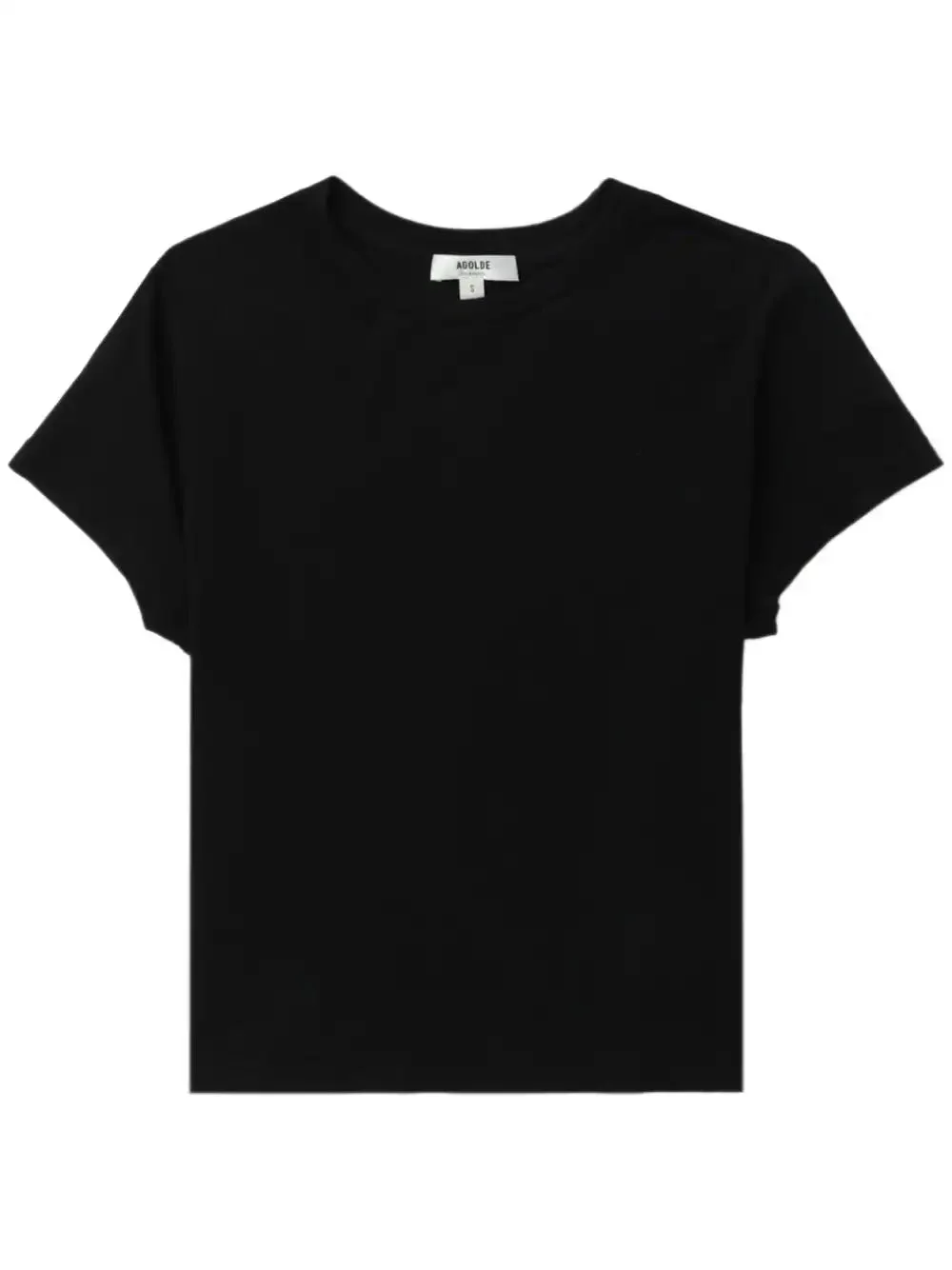 Agolde's Adine Shrunken Tee is the perfect cropped t-shirt. This tee is cut in a breathable, ultra-soft cotton, perfect for wearing alone or layering. This fit is true to size. Product Details Designer ID: A7180C-1507-BLK Color: Black Composition: 100% Organic Cotton Body Length: 19 3/4" Chest: 37" Sweep: 36 1/2" Shoulder to Shoulder: 15" Sleeve Length: 5 1/4" Made in USA
