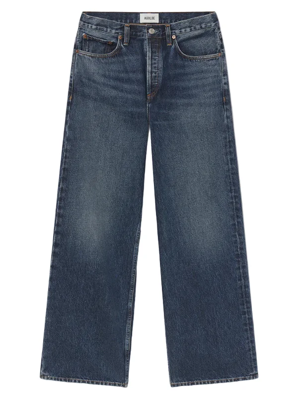 Agolde's Arc Jean 32" offers a relaxed wide-leg silhouette with a mid-rise waist. Cut from rigid regenerative cotton denim, it softens with wear while maintaining structure. Subtle fading, marbling, and whiskering add lived-in character, making it ideal with fitted tops or cozy knits. Product Details Designer ID: A290-1206-SHWV Color: Shortwave Composition: 100% Regenerative Cotton Closure: Button Fly Rise: 11" Inseam: 32" Leg Opening: 19 1/2" Imported