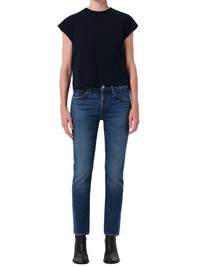 Agolde's Cocktail Ankle Jean is a slim, ankle-length pant in dark red cast indigo denim. Crafted from comfort-stretch regenerative cotton with a super-soft hand, it offers a sleek, true-to-size silhouette. Fading, marbling, and whiskering details add subtle character, making it perfect for pairing with fitted tops or layering under oversized knits for a modern, versatile look. Product Details Designer ID: A291C-1854-OTLE Color: Outline Composition: 99% Regenerative Cotton, 1% Elastane Closure: Button Fly Rise: 9 3/4" Inseam: 28 1/2" Leg Opening: 13" Imported