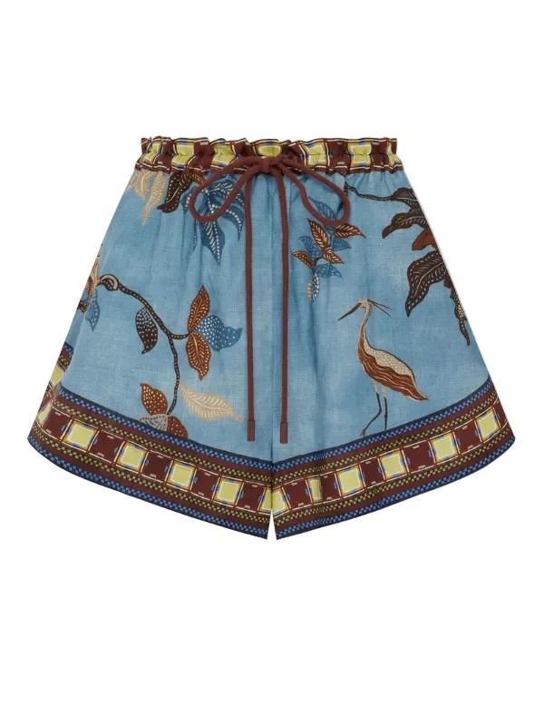 The Georgia short by Alemais is a relaxed jogger silhouette including an elastic waistband with frilled edges. This short features contrast cord drawstring, inseam pockets and a curved hem. Product Details: Designer ID: 6867P Color: Multi Composition: 100% European Linen Imported
