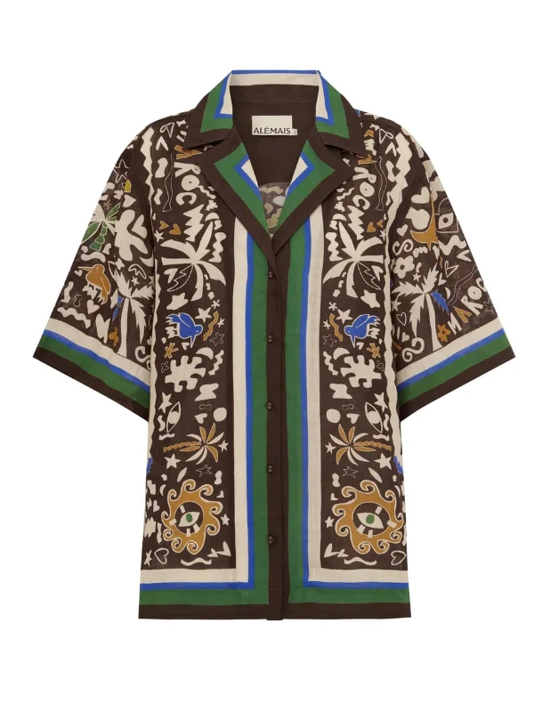The Maroc shirt by Alemais is a relaxed silhouette with a camp collar and self covered buttons. Product Details: Designer: 6145T Color: Multi Composition: 100% Ramie Imported