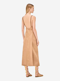 The Melina Dress by Alexis is a vegan suede midi dress with adjustable buckle straps and a belted waist. Product Details Designer ID: A4260442-0955 Color: Walnut Composition: 90% Polyester, 10% Elastane; Lining: 97% Polyester, 3% Elastane Imported