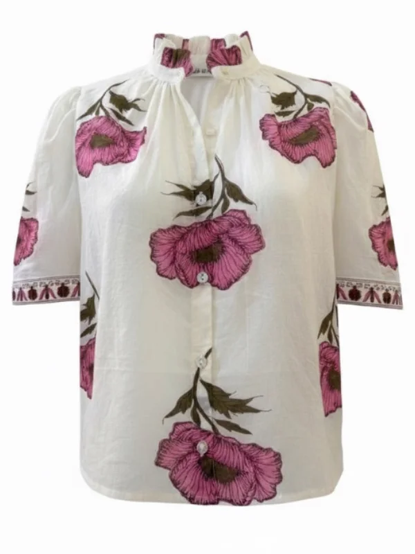 Winn Fuchsia Poppy Shirt in Off-White