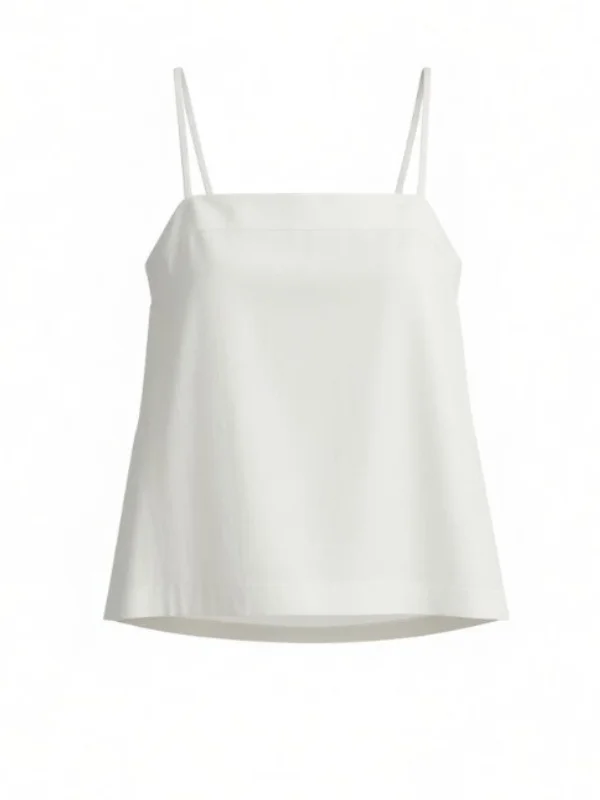 Bondi Born's Kyoto Cami is a refined warm-weather staple, crafted from crisp Japanese dry cotton poplin. This minimalist silhouette features a straight neckline, slender adjustable straps and side splits, with elastic at the back for a comfortable fit. Effortlessly versatile, it pairs seamlessly with the matching Kyoto Pant. Product Details Designer ID: RTWTO20020DC Color: White Composition: 100% Cotton Imported