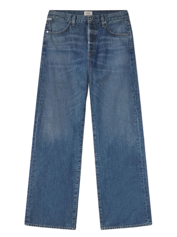 Citizens of Humanity's ‘Annina’ jean features a high rise and full-length straight leg for a relaxed yet refined shape. The ‘Sunland’ wash is a sun-faded medium indigo with vintage-inspired whiskering and marbling. Made from rigid regenerative cotton, the denim has a soft, broken-in feel from the first wear. Product Details Designer ID: 2038J-1136_SNDLN Color: Sunland Composition: 100% Regenerative Cotton Closure: Button Fly Rise: 11 1/4" Inseam: 33" Leg Opening: 20 1/2" Imported