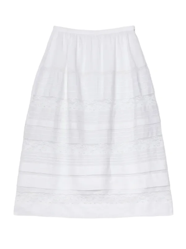 Graced with Edwardian-inspired pintucks and lace, Doen's Sidra Skirt is crafted from crisp, lightweight ramie. Structured and slightly sheer, it’s finished with an invisible zipper at the waist for a flattering fit. Product Details Designer ID: 216-3178-100-WH Color: Salt Composition: 100% Ramie Imported
