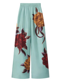 La DoubleJ's Palazzo Pants sit on the waist and fall flared, with a wide, breezy fit through the legs – like a skirt, but with the comfort of pants. With a woven texture and a lustrous hint of shine, they're crafted in fluid silk twill from Lake Como and are prime for your most elegant outings in their new Peony print placed perfectly by hand. Product Details Designer ID: TRO0026 Color: Peony Print Composition: 100% Silk Made in Italy