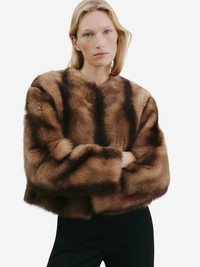 Nili Lotan's Elan is a short-body shearling jacket. Collarless design with relaxed shoulders. Side seam pockets. Fur hook closure. Fully lined with leather facing. Product Details Designer ID: 12852L202 Color: Camel/Brown Composition: 100% Lambksin Leather Imported