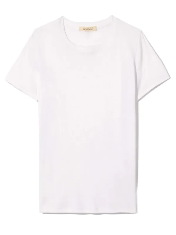 Nili Lotan's Elin is a lightweight crewneck tee in American cotton. Slim body. Self trim at neck. Top stitch detail at neck. Interior binding at shoulder and back neck. Cover stitch at hem and sleeve. Product Details Designer ID: 12863 K156 Color: White Composition: 100% Cotton Made in USA