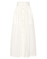 button-front gathered maxi skirt