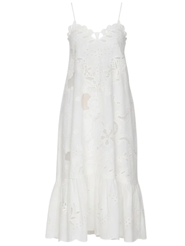 The Iyla soutache slip dress by SEA features detailed soutache embroidery, adjustable straps and midi silhouette. Product Details: Designer ID: PF25-059 Color: White Composition: 85% Cotton, 15% Linen Imported