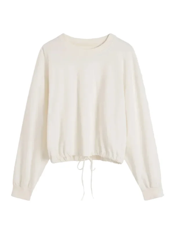 Drawstring Long Sleeve Top in Off White