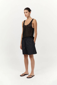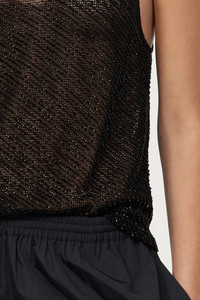 A refined expression of craftsmanship, St. Agni's Glass Beaded Mesh Top is semi-sheer, sculptural and delicately constructed. Adorned with hand-applied glass beads, it drapes fluidly, lending a sense of understated elegance. Product Details Designer ID: W25-214JBK Color: Jet Black Composition: 100% Cotton Mesh with 100% Glass Bead; Contrast: 100% Silk Imported