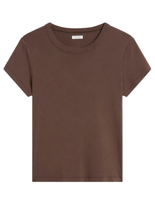 A forever favourite silhouette, St. Agni's Organic Cotton Baby Tee features a classic crewneck cropped silhouette, short-sleeve design and fitted shape. Easy for everyday wear and crafted from 100% organic cotton for a super soft hand feel. Product Details Designer ID: R24-201FGE Color: Fudge Composition: 100% Organic Cotton Imported