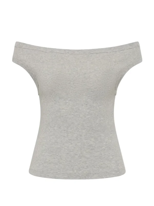 The Organic Cotton Off Shoulder Top by St. Agni is a core wardrobe essential designed to highlight the neckline. This top features an off-shoulder silhouette with a fitted shape that offers a modern approach to everyday dressing. Product Details: Designer ID: S26-20140GML Color: Grey Marie Composition: 100% Organic Cotton Imported
