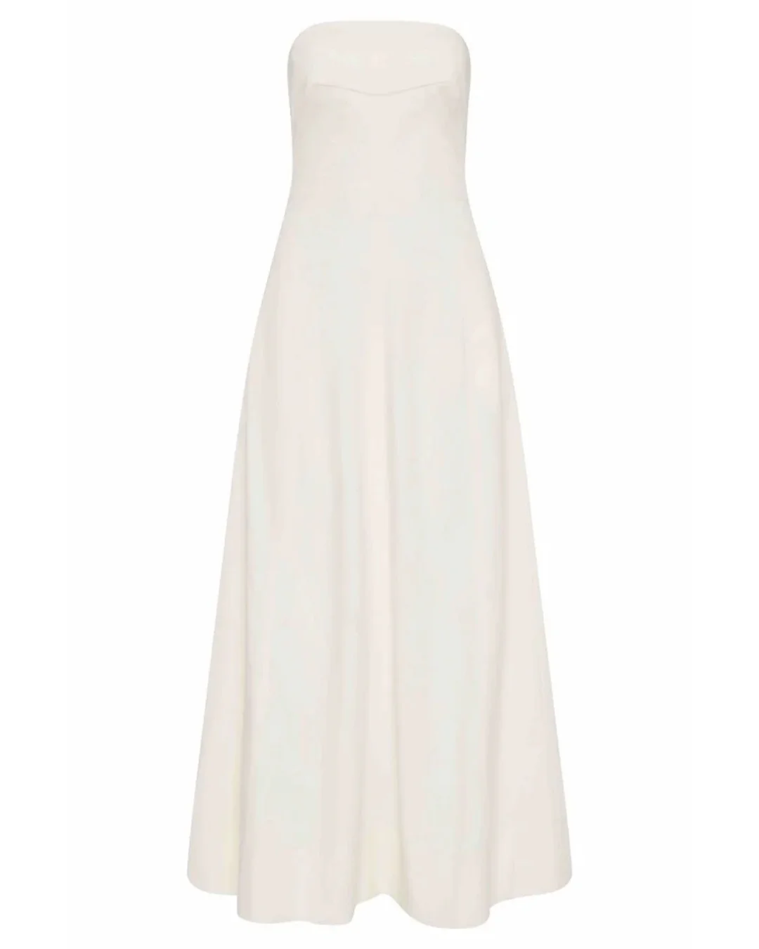 The Sculpted Cotton Strapless Dress by St. Agni is designed with curved panel lines, bust darts and internal boning for support. Cut to a maxi length that features side seam pockets and a full circle skirt that adds fluid movement. Product Details: Designer ID: W25-903MLK Color: Milk Composition: 51% Organic Cotton, 46% Cotton, 3% Elastane Imported
