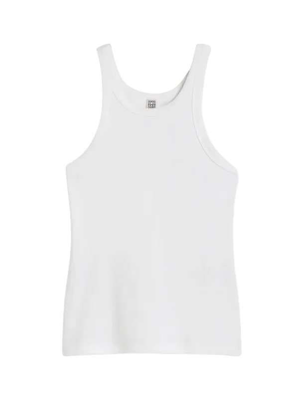 The Curved Rib Tank is TOTEME's signature tank top, made in Portugal from ribbed organic-cotton jersey blended with a hint of elastane for a comfortable, body-hugging fit. It has a high round neck and curved armholes that accentuate the shoulders, then is finished with a straight hem. Use it as a year-round styling classic. Product Details Designer ID: 211-437-772 Color: White Composition: 93% cotton organic, 7% elastane Imported