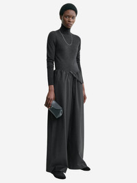 TOTEME'S Drawstring Dinner Trousers are tailored from fluid wool with an elasticated drawstring waistband that folds inward to create voluminous gathers. These wide trousers are styled with a coordinating blouse as part of a sophisticated dinner look – expressing our penchant for set dressing. Product Details Designer ID: 261-WRB0343-FB0552-019 Color: Charcoal Melange Composition: 100% wool Imported