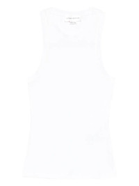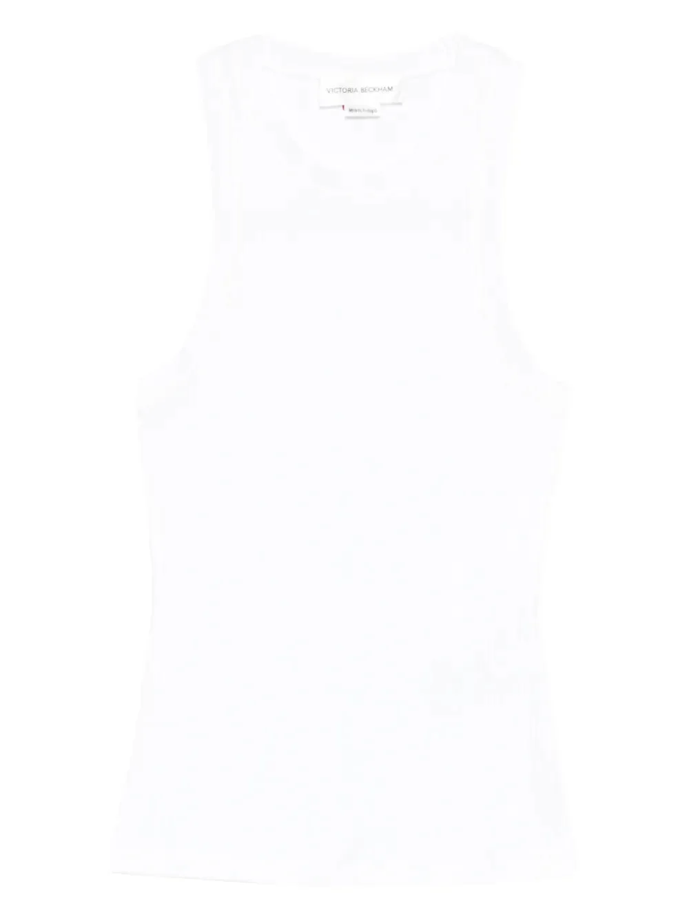 A foundational piece in any wardrobe, Victoria Beckham's Rib Tank is crafted from 100% organic ribbed cotton for a tactile finish. Designed for a slim fit, it has a relaxed racer-back design and a contrasting Victoria Beckham monogram at the centre back neckline. Product Details Designer ID: 1126JTP007081A Color: White Composition: 100% Organic Cotton Imported