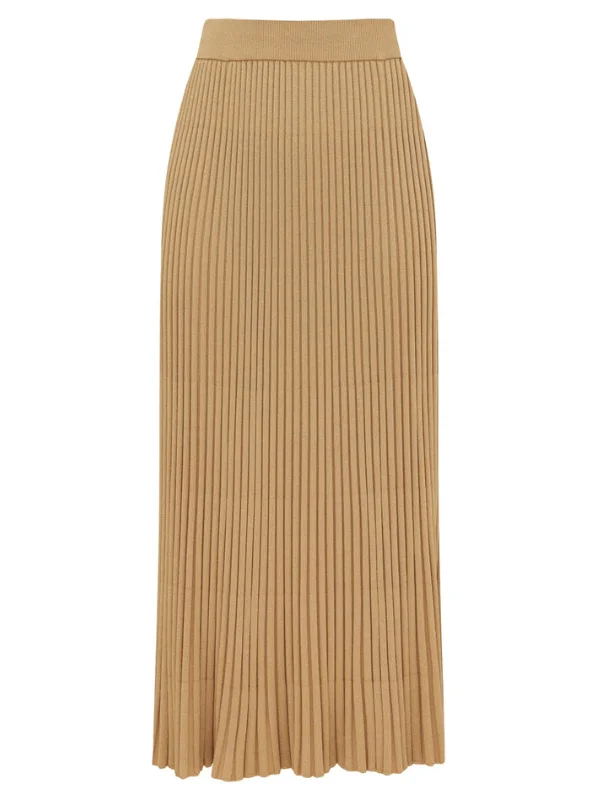 The Luna Metallic Midi Skirt from Zimmermann's Spring 2026 Collection, Kindred Spirit. A knit midi skirt featuring an elasticated waistband and pleated frill hem. Product Details Designer ID: 8721SS261 Color: Metallic Gold Composition: 73% viscose, 12% polyester, 11% polyamide, 4% metallised fibre Imported