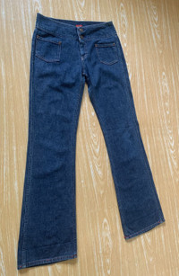 DESCRIPTION PLEASE READ BEFORE BUY!! THIS IS USED CLOTHING!!! PLEASE DONT EXPECT IT TO BE LIKE NEW OR IN PRISTINE CONDITION.. Measurements in inches: waist =28 inch outseam =38.5 inch inseam =29.5 inch hip =36 inch front rise =9 inch back rise=11 inch knee= 15 inch leg opening =17 inch Made in = JAPAN Condition : condition is good.. no holes and stains..all measurement in inches.. please make sure your size in inches.. please refer to the pictures..