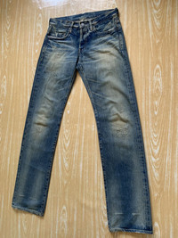 Description KINDLY PLEASE READ ALL THE DESCRIPTION BEFORE MAKE ANY PURCHASE. IF YOU DOUBT ON SOMETHING, DON'T HESITATE TO ASK ANY QUESTION :- Size: 29” (RECOMMENDED TO 28”-29” Inches) Condition : nice distressed design..,have a little yellow stains.. please refer to the pictures!!! Material: Refer to photo Kindly refer the actual measurements for better precision. Actual size Manual Measurement (approximately) : WAIST: 14.5”(29)" inches OUTSEAM: 40.5" inches INSEAM: 31" inches FRONT RISE: 8.5”inches BACK RISE: 11” inches HIP: 18”(36)” inches KNEE: 8”(16)” inches LEG OPENING: 7”(14)” inches MADE IN JAPAN Condition: An item that has been used or worn previously. See Our listing for full details and description of any imperfections. Please don't expect it to be like new or in pristine condition PLEASE LEAVE YOUR PHONE NUMBER AND E-MAIL ADDRESS ON THE NOTE WHILE MAKE A PURCHASE AND PLEASE MAKE SURE YOUR ADDRESS IS COMPLETE AND CORRECT. FOR CANADA @ OTHER COUNTRY WHICH USING "P.O BOX", PLEASE PROVIDE YOUR ''BUZZ CODE/NUMBER'' IN YOUR ADDRESS FOR SECURED DELIVERY. ATTENTION : Please pay close attention to measurements provided. Do not rely on tag size as pre-worn items may have been altered, stretched or shrunk & vintage sizes do not directly translate the modern sizes.The best way to ensure a correct fit is to compare our measurements with the measurements of a similar item that you know fits you well.Please enlarge the photos for clearer image. Please be Sure to Read The Entire Description and Look at All The Pictures.. !!! STRICTLY NO REFUND AND RETURNABLE ITEM AFTER PAYMENT HAS BEEN MADE. !!! Offers your best price 😀 Thanks for your visit.