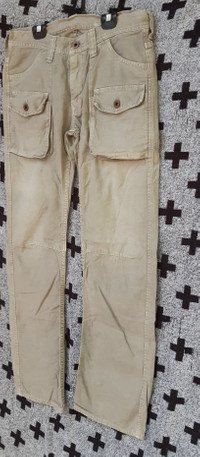 DESCRIPTION PLEASE READ BEFORE BUY!! THIS IS USED CLOTHING!!! PLEASE DONT EXPECT IT TO BE LIKE NEW OR IN PRISTINE CONDITION.. Measurements in inches: waist =16"(32 inch) outseam =41 inch inseam =29.5 inch hip =18"(36 inch) thigh =11"(22 inch) front rise =9 inch back rise=11.5 inch knee= 8.5"(17 inch) leg opening =8"(16 inch) Made in = JAPAN Condition : condition is good.. all measurement in inches.. please refer to the pictures!!!