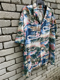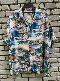 DESCRIPTION PLEASE READ BEFORE BUY!! THIS IS USED CLOTHING!!! PLEASE DONT EXPECT IT TO BE LIKE NEW OR IN PRISTINE CONDITION. Measurement : Armpit to armpit = 32 Inches Length(front)= 32 Inches Lenght(back)= 34 inches Shoulder= 25inches Sleeve= 11 inches Made in = HAWAII Condition : Used ,Good condition, no holes & stains.. all measurement in inches.. please refer to the pictures..